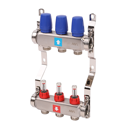 Коллектор 3 выхода с расходомерами в сборе 1" x 3/4", PrimePipe Tubes