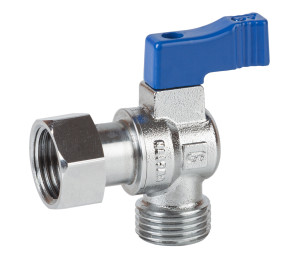 Кран шаровый угловой с накидной гайкой 3/4" вн.-нар., Genebre (синий)