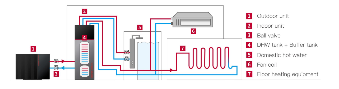 Его встроенные баки для горячей воды и буферные баки устраняют необходимость в отдельных хранилищах, что делает его идеальным универсальным решением для больших домов и многозональных систем.