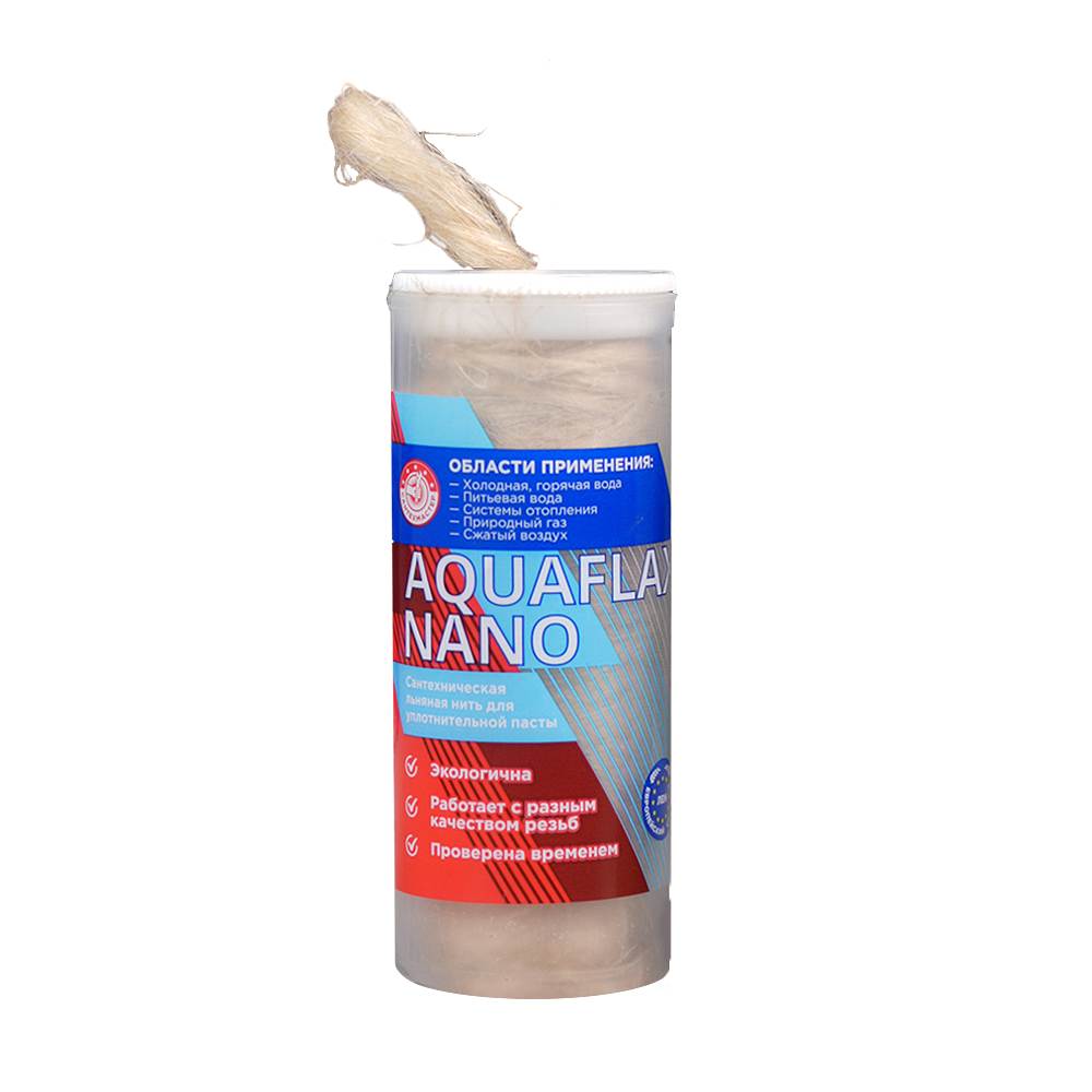 Сантехническая льняная нить AQUAFLAX NANO производится из европейского чесаного льна, перерабатывается на производстве и пакуется в тубы для удобного использования.